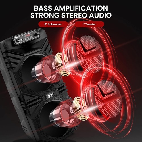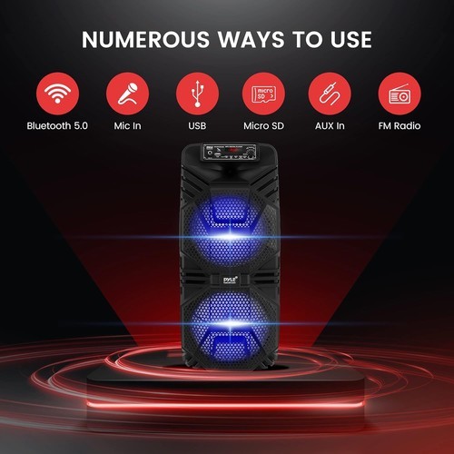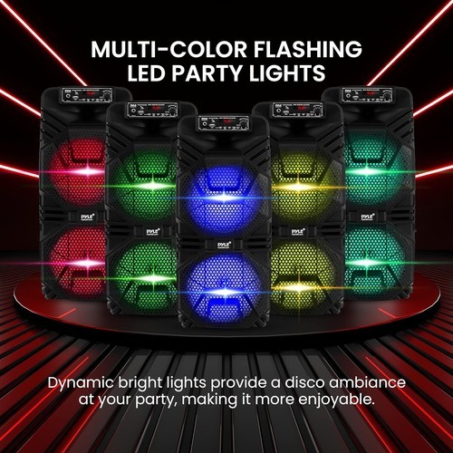 Pyle PPHP2836B 600W Bluetooth Portable PA Speaker Dual 8" Subwoofer w/ Lights