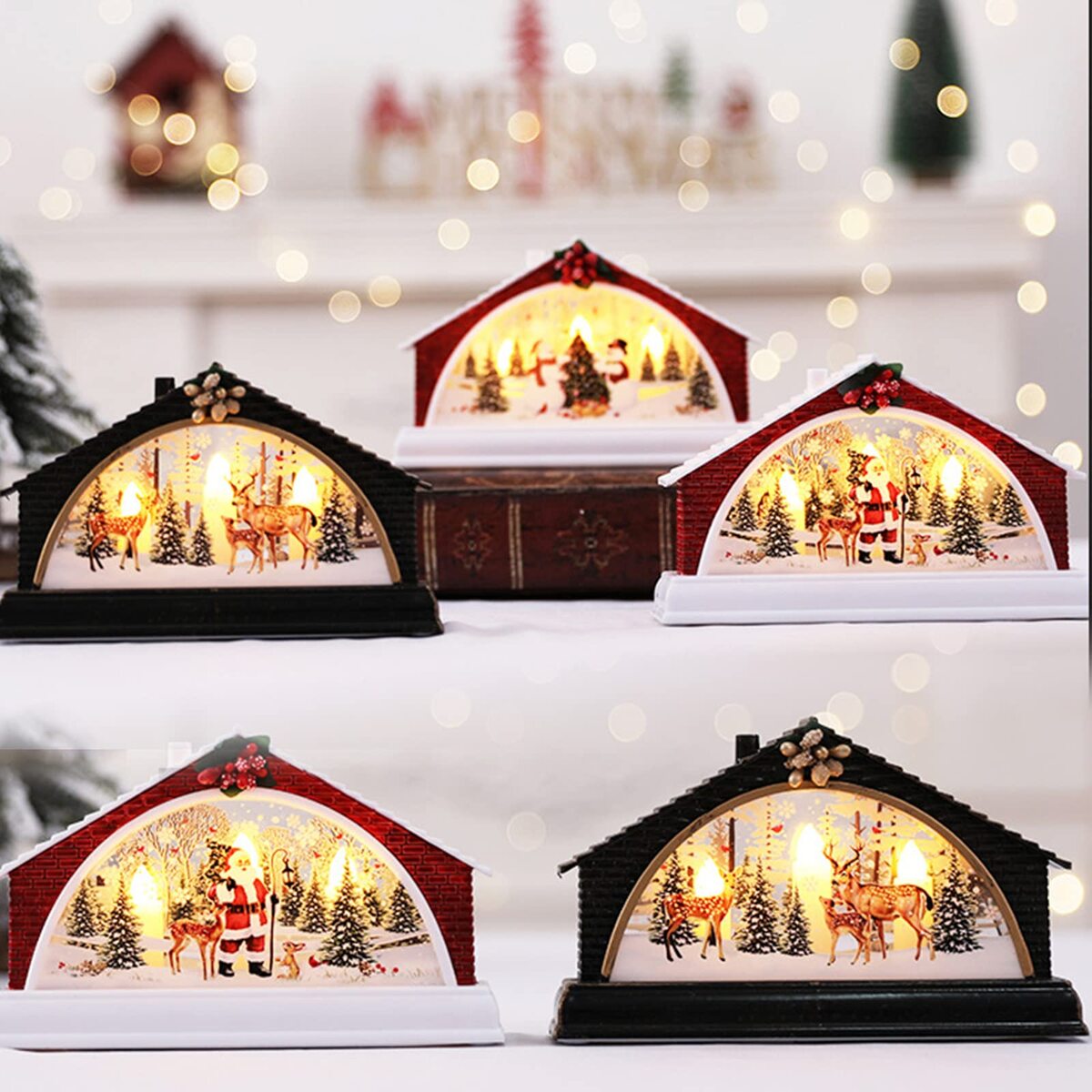 - QSDGFH 3pcs Christmas LED Lantern, Light up Snow Globe Lantern Santa Snowman Elk