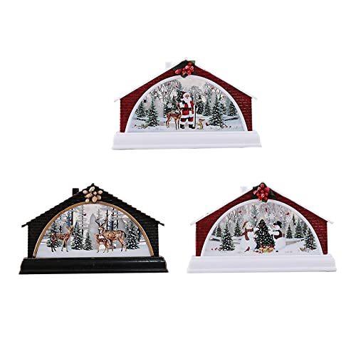 QSDGFH 3pcs Christmas LED Lantern, Light up Snow Globe Lantern Santa Snowman Elk