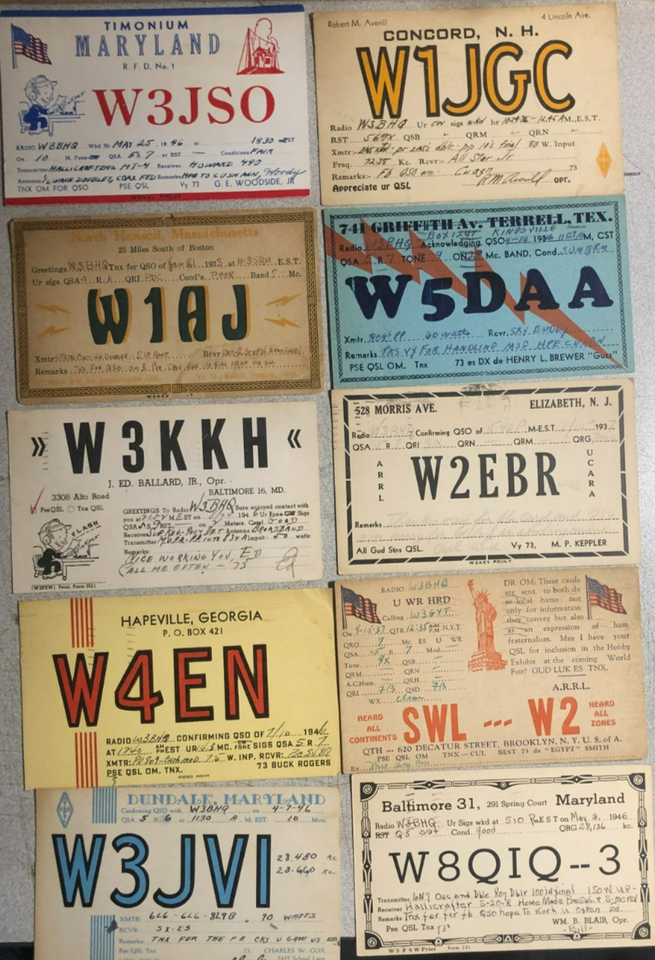 QSL CARDS lot of ten vintage ham radio cards from the 1930s and 1940s