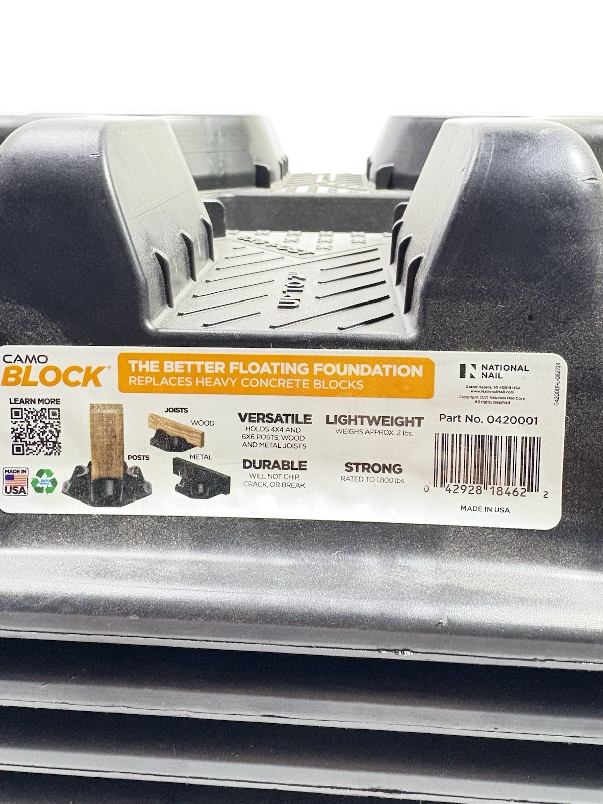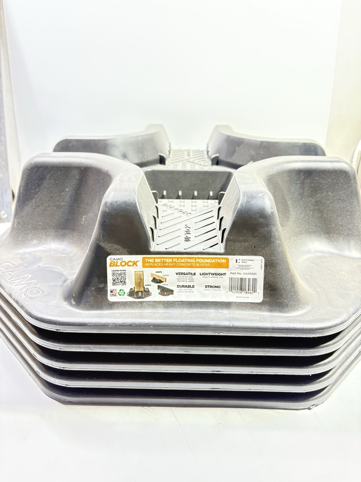 Brand new set of 5, CAMO BLOCK, floating deck foundation base. See pictures for more details Comes in a lot of 5, exactly as pictured Thanks for looking