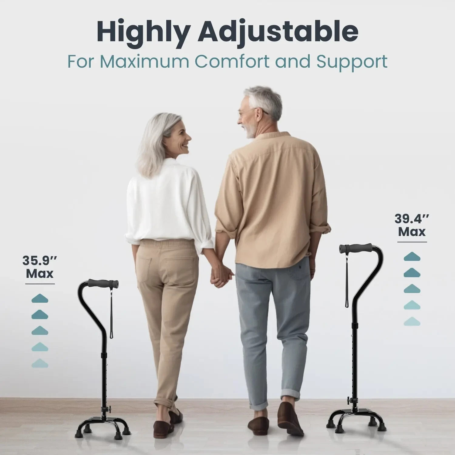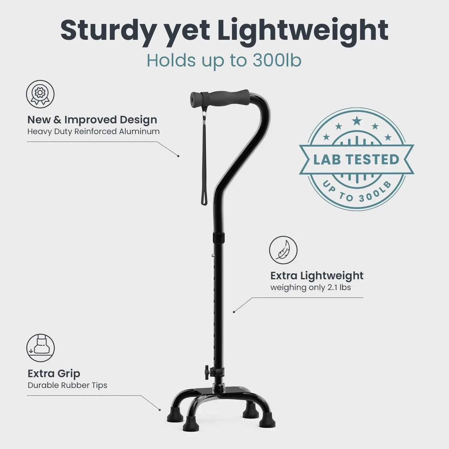 - Quad Cane (300 Lb) - Adjustable Walking Cane with a Large 4 Pronged Base for Ext