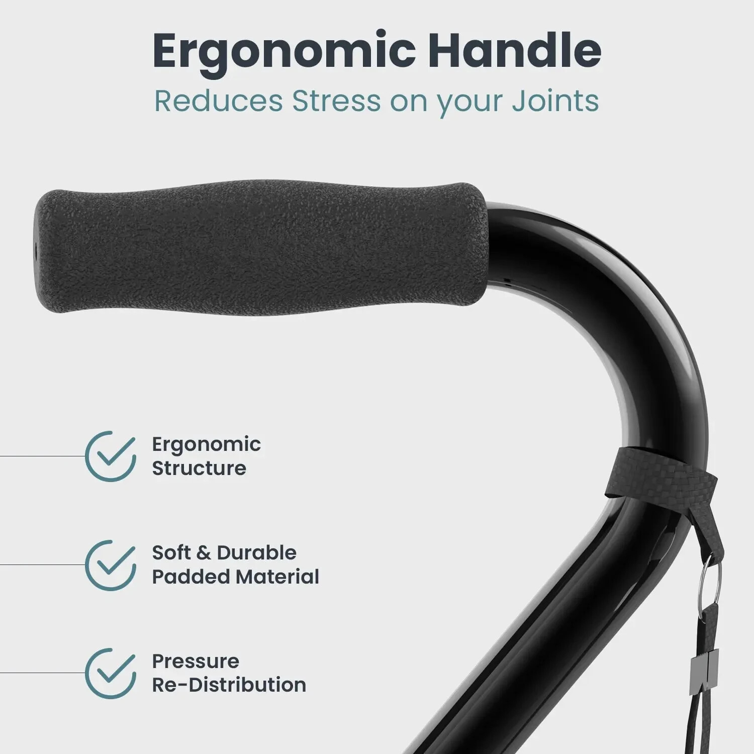 Quad Cane (300 Lb) - Adjustable Walking Cane with a Large 4 Pronged Base for Ext