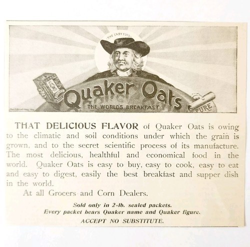 Quaker Oats Delicious Flavor 1897 Advertisement Victorian Hot Cereal ADBN1A4