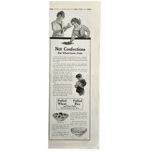 Quaker Puffed Wheat And Rice 1917 Advertisement Antique Breakfast Cereal DWII9