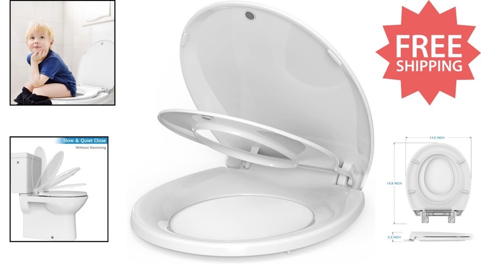 Experience tranquility with our Slow and Quiet Close Toilet Seat, designed to close gently and silently?eliminating slams and creating a peaceful bathroom environment. The quick-detach feature ensures effortless installation and cleaning, while included rubber pads protect the hinges. Compatible with both adults and children, it features a built-in toddler seat with a magnetic mechanism for easy use, fostering independence. Crafted from durable, high-quality polypropylene, it resists stains, chips, scratches, and cracks, ensuring long-lasting performance. Its standard round size fits most toilet bowls, measuring 16.2-16.7 inches in length and 14.2 inches in width. To ensure fast and reliable delivery, we work with multiple fulfillment partners and suppliers. Depending on availability and location, your order may ship from different warehouses or arrive in packaging that varies from item to item. Tracking details are typically provided shortly after shipment, and customer satisfaction remains our top priority. Please note that due to carrier policies and regional regulations, certain items may not be eligible for delivery to specific states or territories.