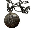 - Quartz Pocket Watch with Castle Motif - Fantasy Medal Design
