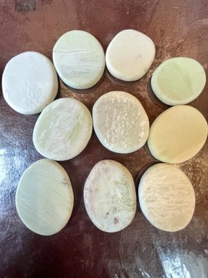 The product is a set of 10 quartzite disks stone vase filler rocks, perfect for adding a touch of natural elegance to any home decor. About 2? each. Variable coloration.