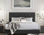 - Queen Black Linen Upholstered Platform Bed Frame with Button-Tufted Headboard