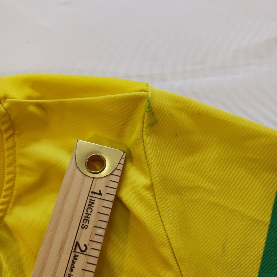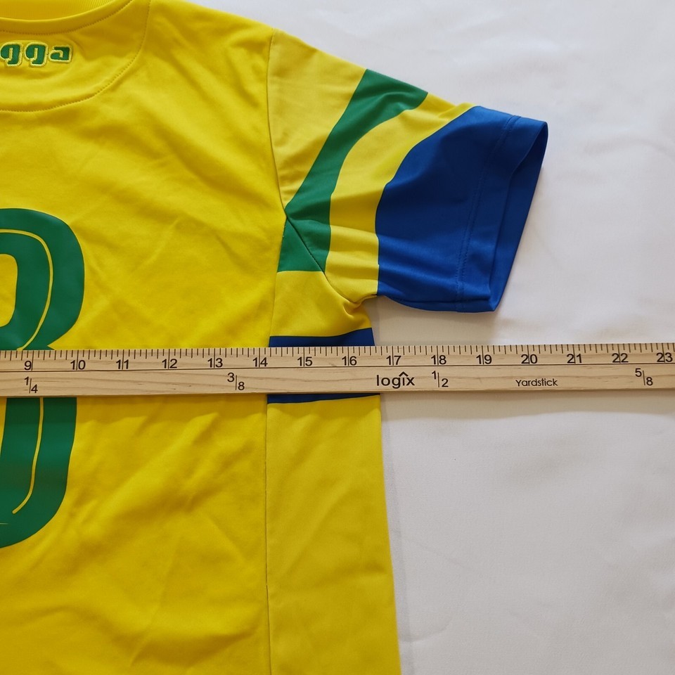 Elevate your soccer game with this Quick-Dry Jogo Bonito Soccer Academy #18 jersey in size Youth Medium (YM). The vibrant yellow color is perfect for boys who want to stand out on the field. Made for soccer enthusiasts, this jersey is perfect for games and practices. With short sleeves and a comfortable fit, this jersey is ideal for young boys who are passionate about soccer. The Quick Dry technology ensures that sweat doesn't stick to the fabric, keeping the player dry and comfortable throughout the game. Order now and take your soccer skills to the next level with this high-quality jersey. Please check pictures for accurate measurements. All used clothing is pre-washed and stored in a smoke-free home. Please contact us for any issues or concerns. Thank you. 0062