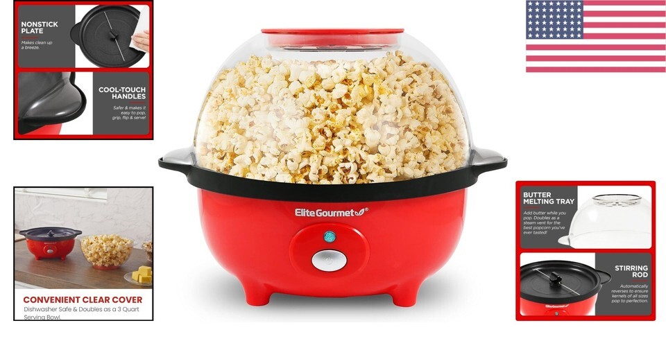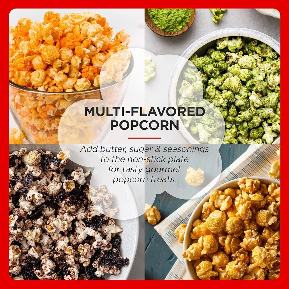 Quick-Heat Technology: Enjoy faster popping, up to 40% quicker than traditional methods - no preheating required!