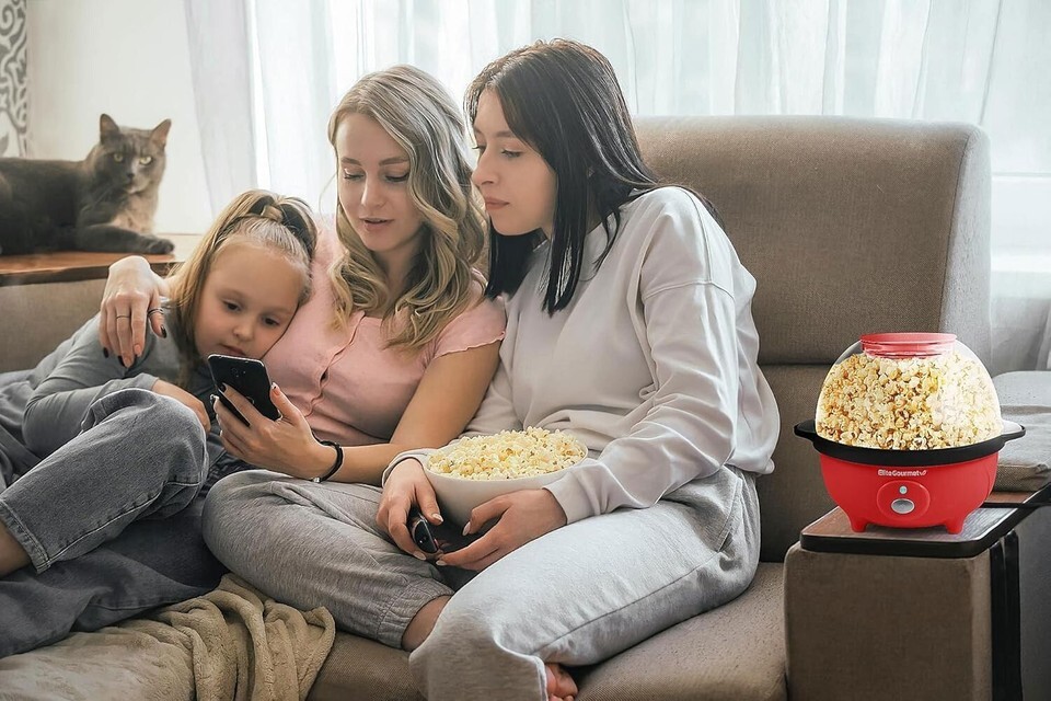 Hot Air Popcorn Time: Pops up to 3 quarts at once for sharing and enjoying.
