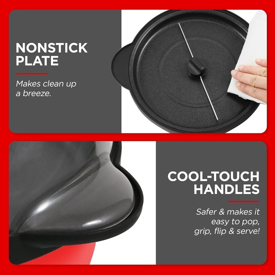 Easy to Clean: Nonstick popping hot plate makes clean-up a breeze - simply wipe away crumbs!