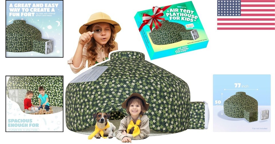 - Quick-Inflating Camo Air Tent Playhouse for Kids - Fun & Spacious Design