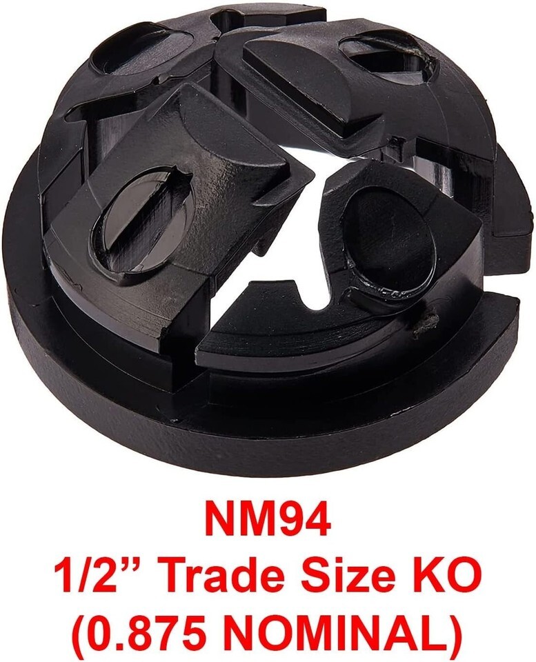 Knockout Size: Fits 1/2-inch knockouts in electrical boxes