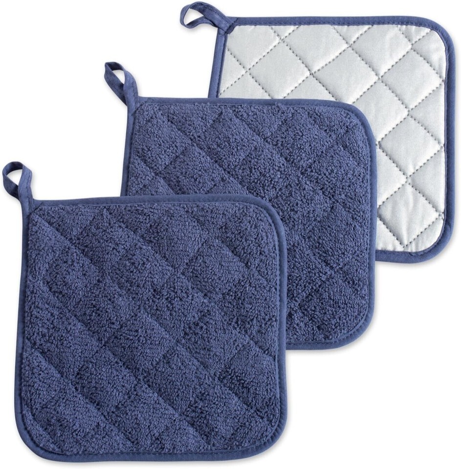 Quilted 100% Cotton Potholders Set in French Blue - 3 Piece Kitchen Essentials