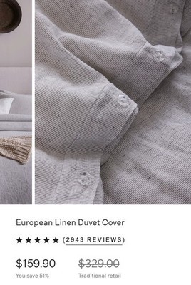 - Quince European Linen Duvet Cover Light Beige Stripe King/Cal King NWOT