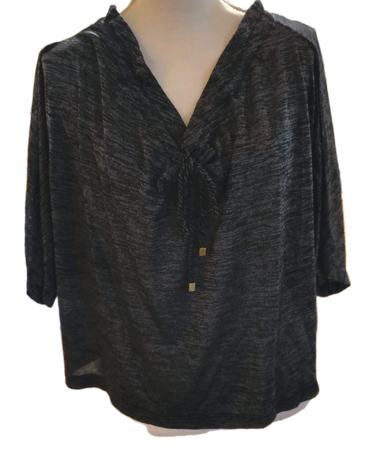 - Quiq Women's Plus Size Gray Silver Glitter Bat Sleeve Top 2X