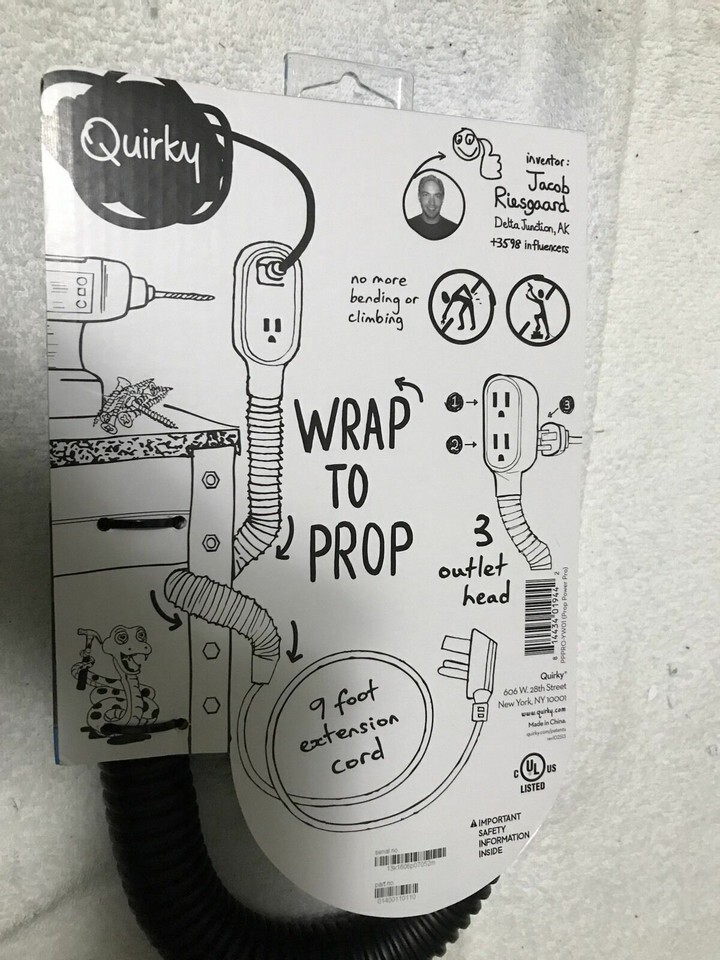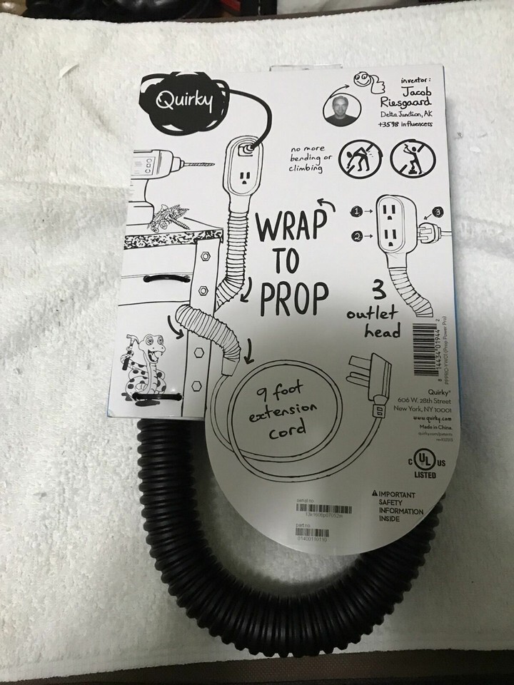 - Quirky Prop Power Pro Wrap Around 9-Foot Extension Cord Black 3 Plugs