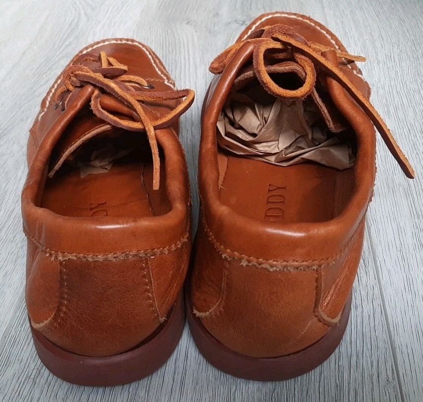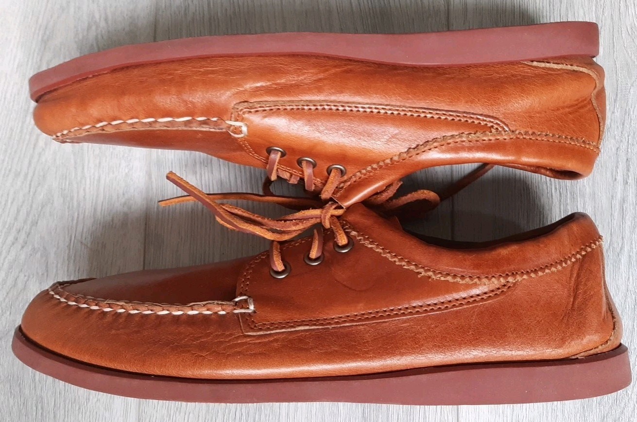 Quoddy Blucher Moc Boat Leather Shoes Men's 10.5 Slip On Made In USA. They have wrinkles/dents from storage and some marks on the soles but otherwise appear to be in very good shape, please see pictures for exact condition.