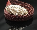 R.O.C. Womens Belt 3118 34” Red Braided Leather Silver Colored Bolo Buckle