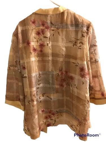 R and M Richards Size 22W Open Cardigan Top Sheer Sleeves Cream Tan Floral