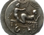 Dieses faszinierende Stück ist eine moderne Reproduktion einer antiken romischen Spintria, eine Spielmarke, von der angenommen wird, dass sie wahrend der frühen Kaiserzeit entweder als Bordell-Zulassungsmarke oder als Spielfigur gedient hat. Die Vorderseite zeigt eine explizite erotische Szene im klassischen Stil und zeigt zwei nackte Figuren, die inmitten drapierter Vorhange Geschlechtsverkehr haben. Die Komposition fangt nicht nur die hemmungslose Sinnlichkeit der romischen Gesellschaft ein, sondern auch ihre Handwerkskunst in der Miniaturkunst. Unter den Figuren befindet sich die Zahl "VI", die dieses Stück als Teil einer breiteren nummerierten Serie bezeichnet, die Gelehrte nach bekannten erotischen Motiven katalogisiert haben. Die Rückseite zeigt die romische Zahl VI, die in einem Lorbeerkranz eingeschlossen ist - ein Design, das oft mit romischem Sieg, Prestige oder offizieller Validierung in Verbindung gebracht wird. Diese Arten von Wertmarken, heute bekannt als Spintrien, wurden nie als legale Wahrung verwendet, sondern privat in Umlauf gebracht, ihr genauer Zweck war immer noch ein Thema wissenschaftlicher Debatten. Dieser Artikel, obwohl eine moderne Replik, spiegelt eine kühne und faszinierende Schnittstelle von antiker romischer Kunst, Sexualitat und sozialen Brauchen wider und bietet Sammlern und Historikern gleichermaßen ein Fenster in Roms weniger diskutierte kulturelle Schichten. "