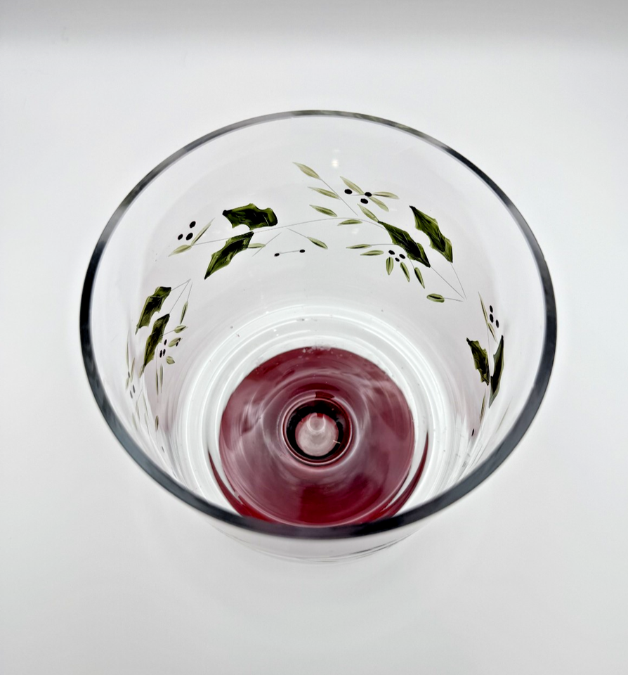 Bring a touch of holiday nostalgia into your home with this rare, discontinued Pfaltzgraff Winterberry hurricane candle holder.