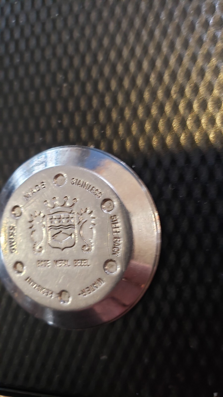 NOTE - this is a rare vintage watch Case back here - this is for parts/repair I do not know the exact model or year of this, if you know something let me know. My research points towards the Elusive Magnum PI Chrono Diver this is approximately 34-35mm across