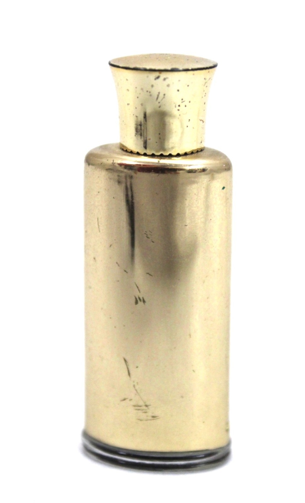 Tiny bottle of a rare perfume, vintage "Trapeze" from Corday. The bottle has a gold metal skin and it is 2 1/2" tall. I think it is about 1/2 full.