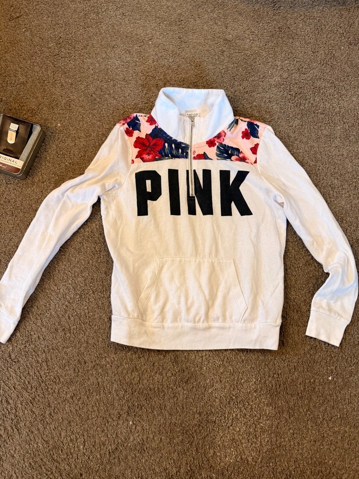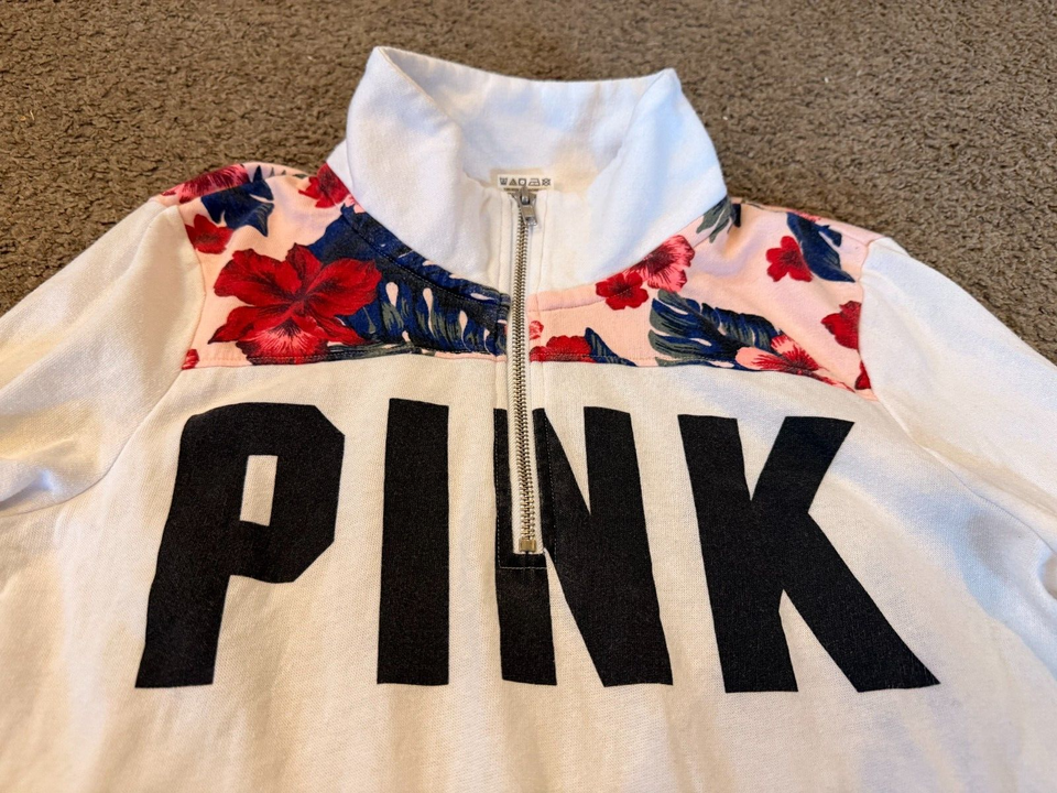 - RARE Y2K Vintage Victoria Secret PINK Dog Logo Half-Zip Sweatshirt Floral S