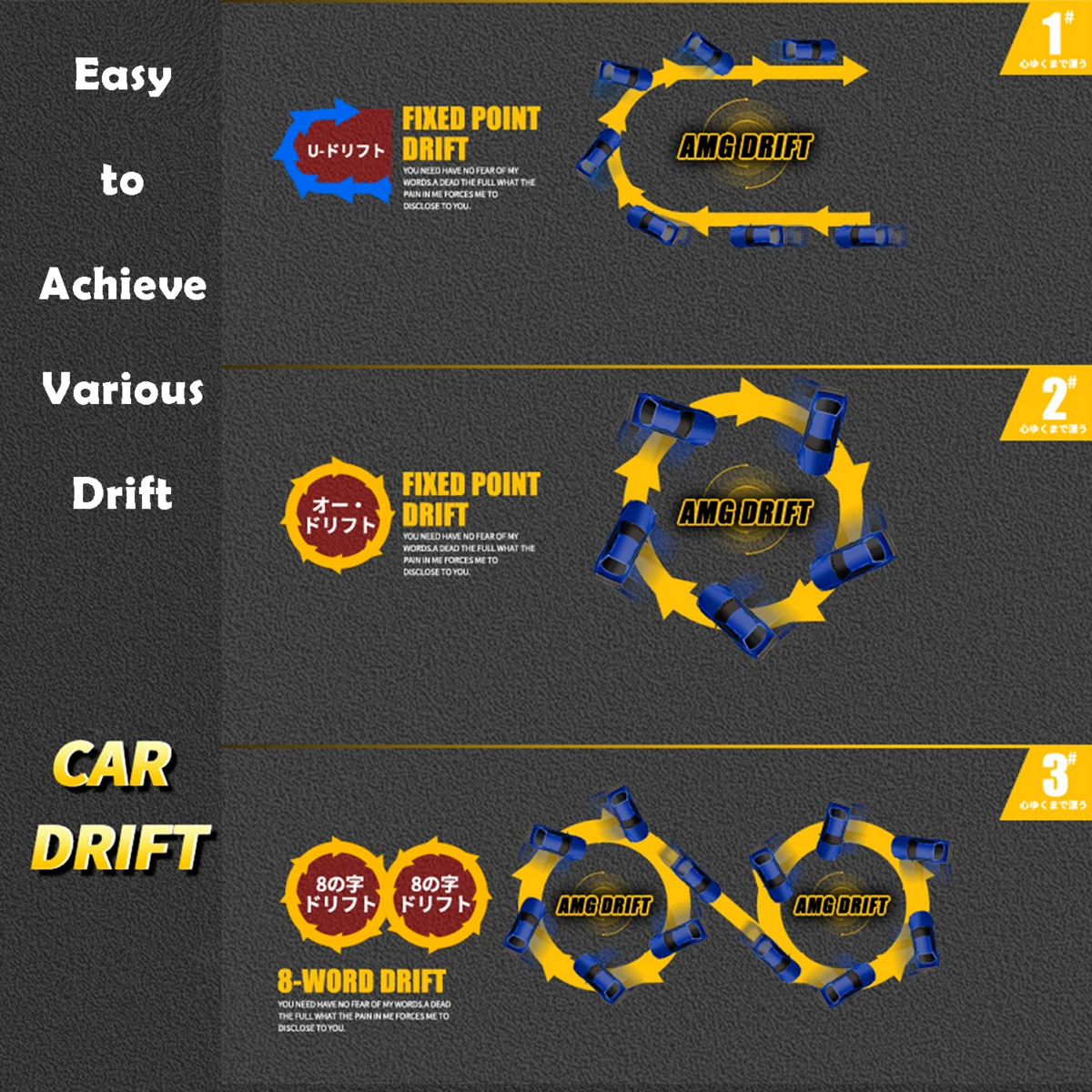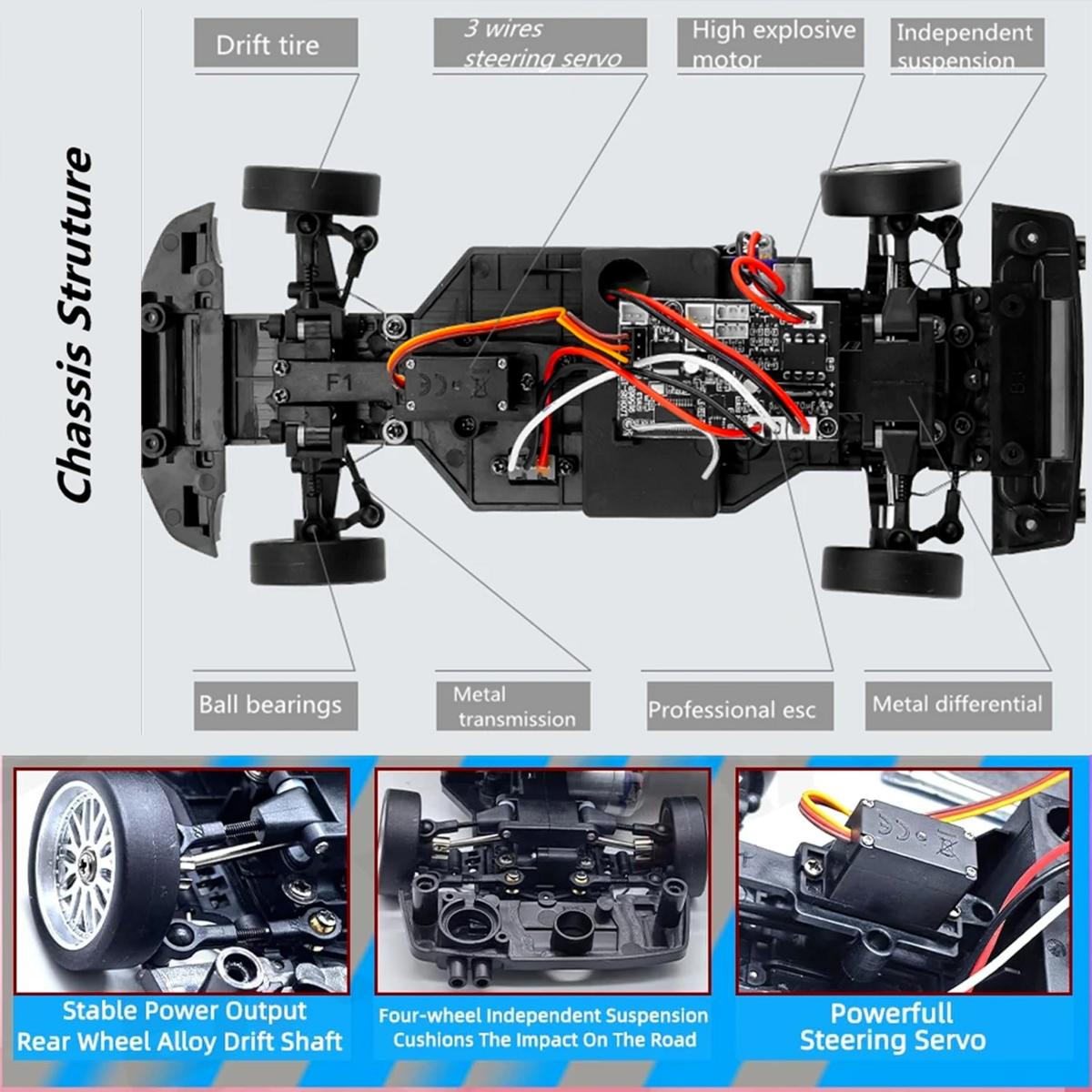 1. Premium Mini Drift Design: Incorporates a sophisticated multi-link design for enhanced stability and control during drifting maneuvers.