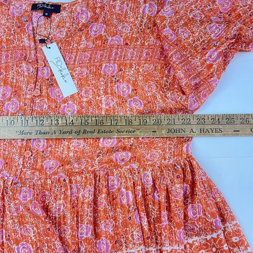 RD+Koko Orange Floral Peasant Blouse Top Long Sleeve Ruffle Hem Boho Style M NWT