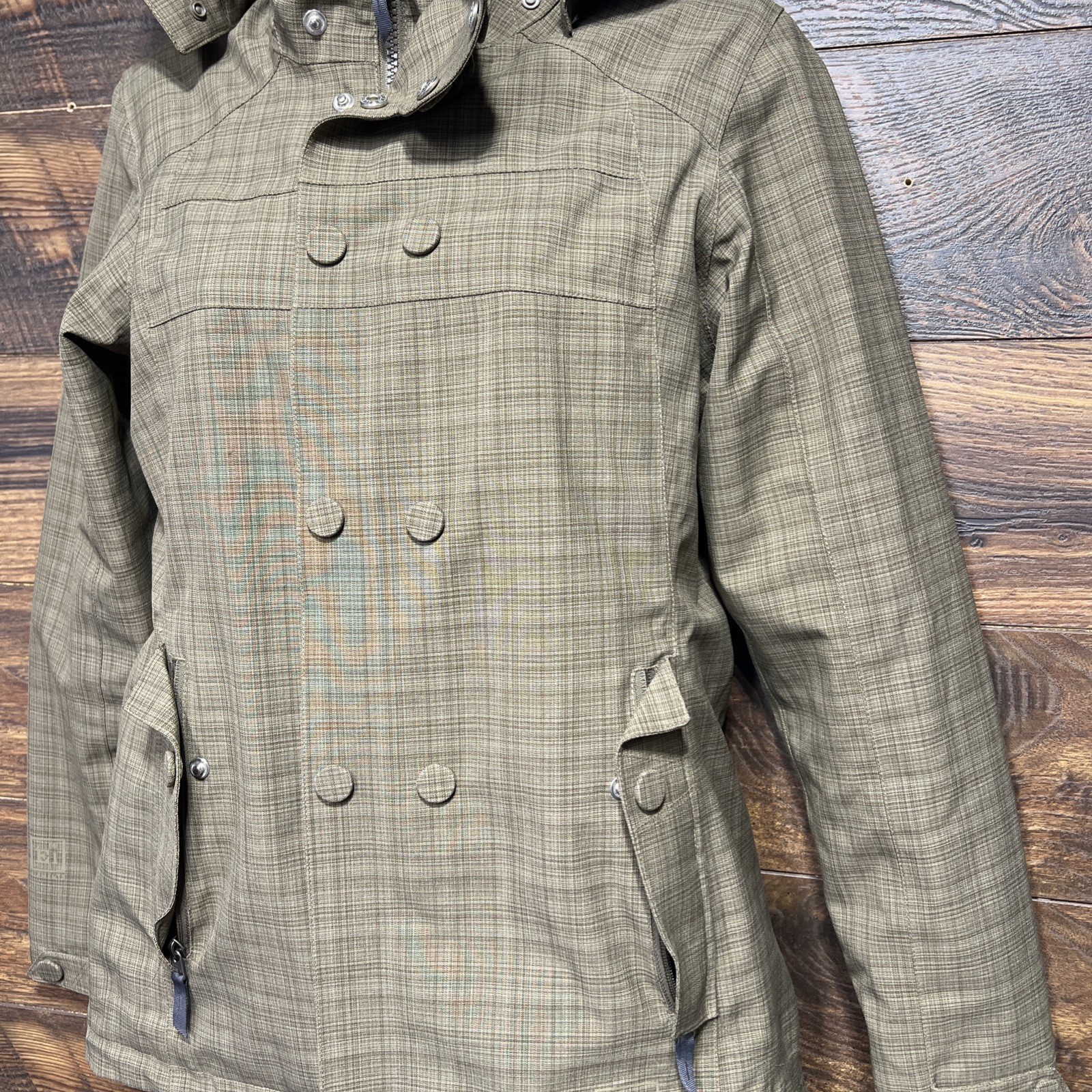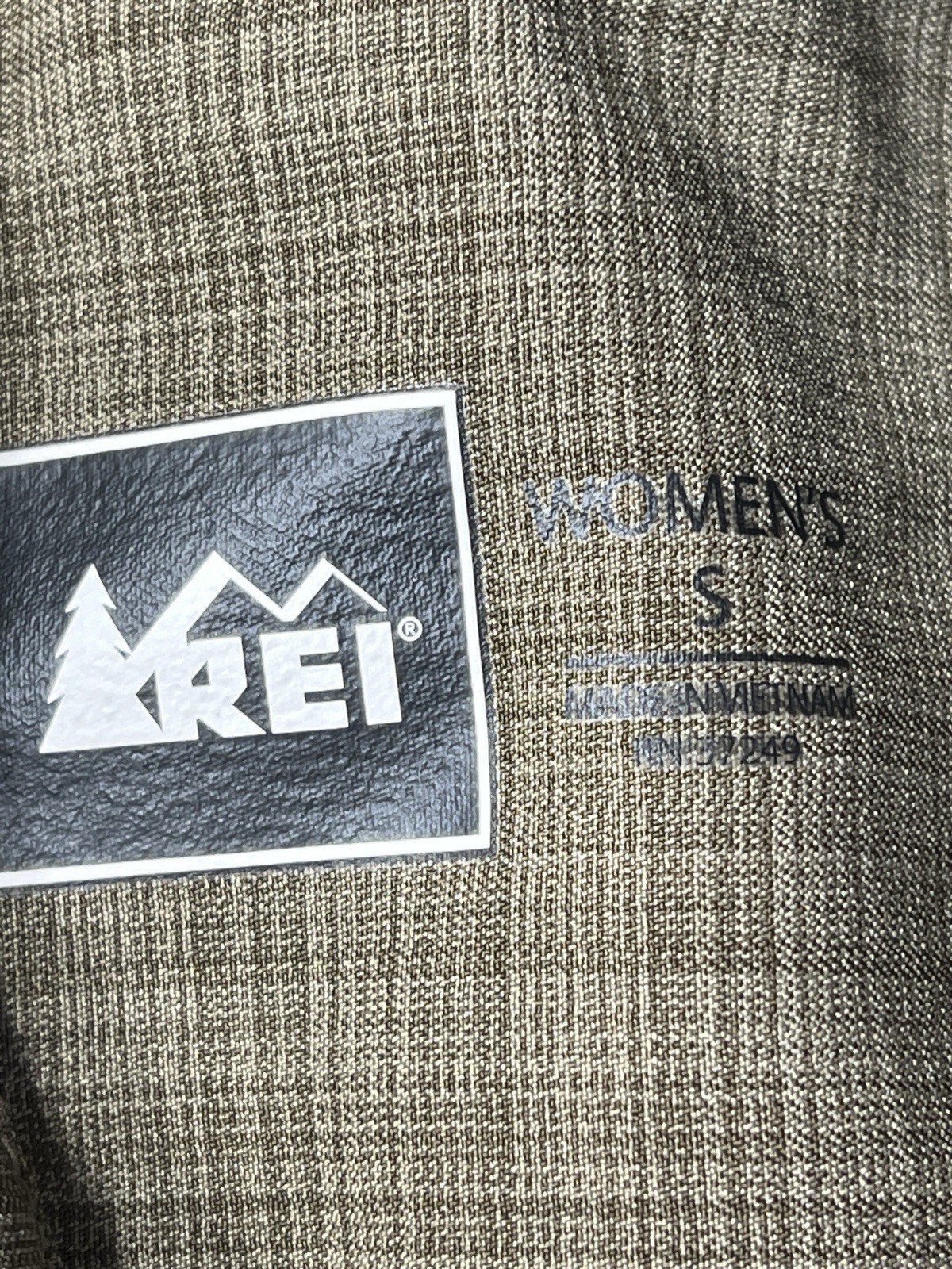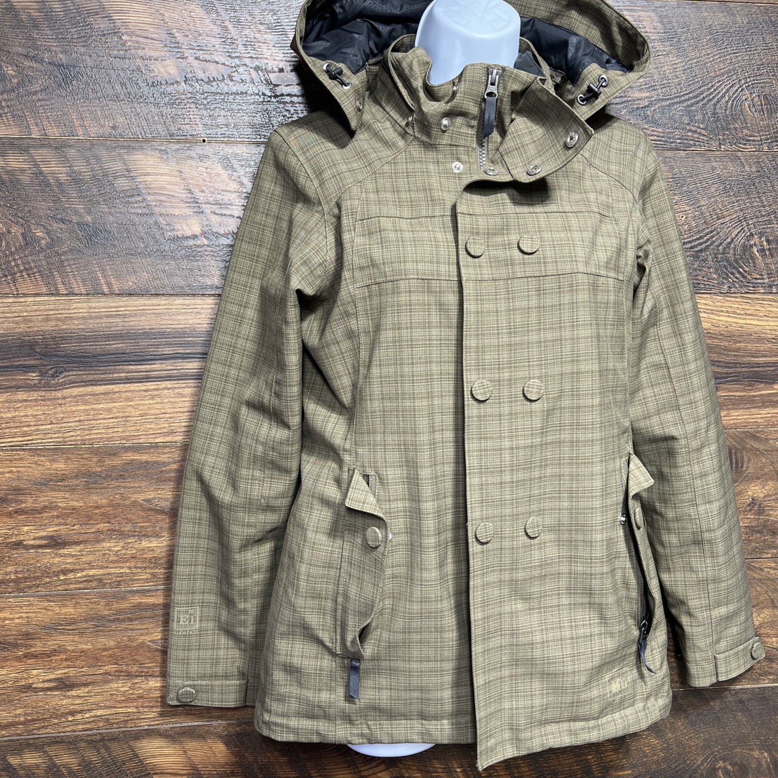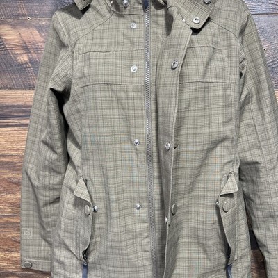- REI Co-op Women's Rain Jacket Shell Hooded Windbreaker S Small Brown Plaid Lined