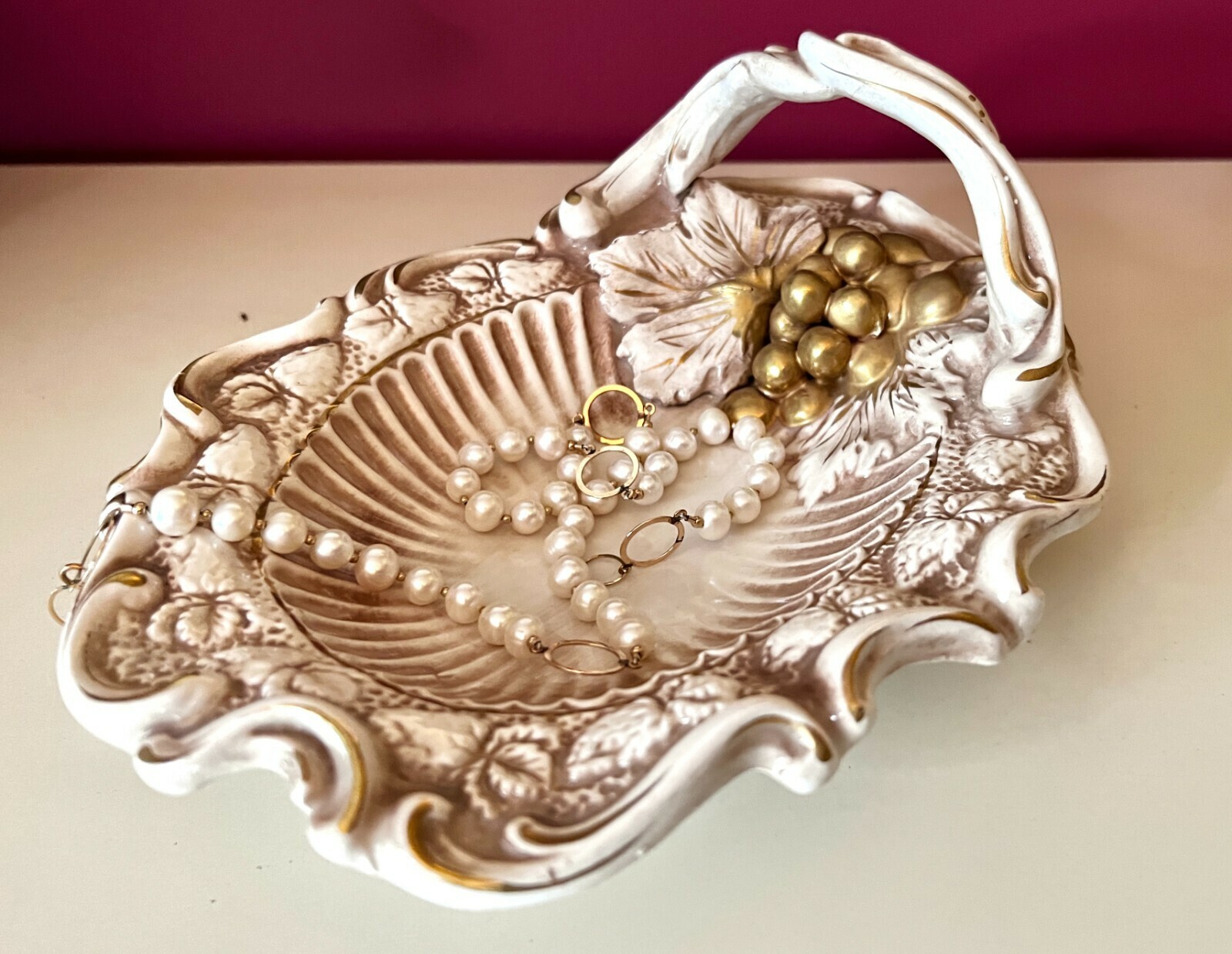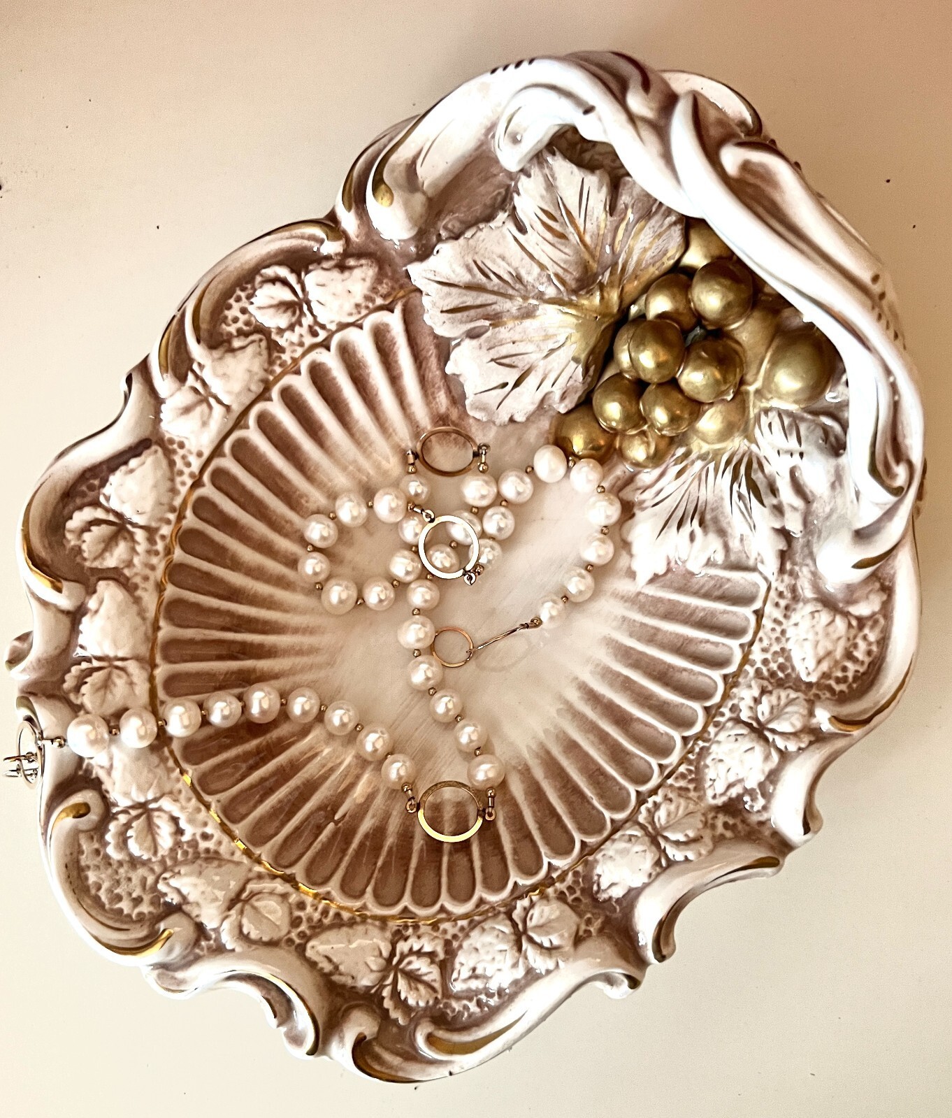 - RETRO Italian Pottery White Ashtray Dish Golden Grape Pattern 38/48 MCM Mint 9"