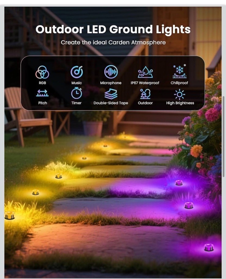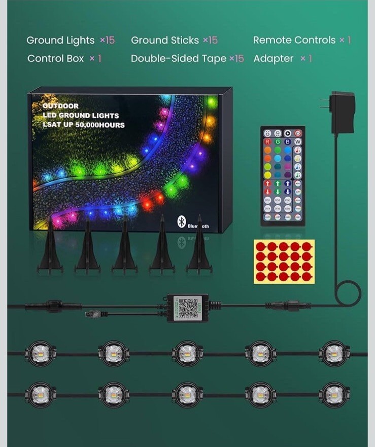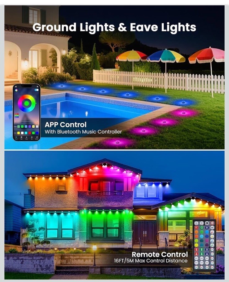 - RGB Outdoor Ground Lights, 50’ Color Changing Pathway Lights with Remote & App
