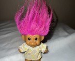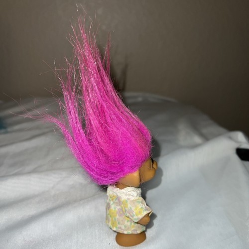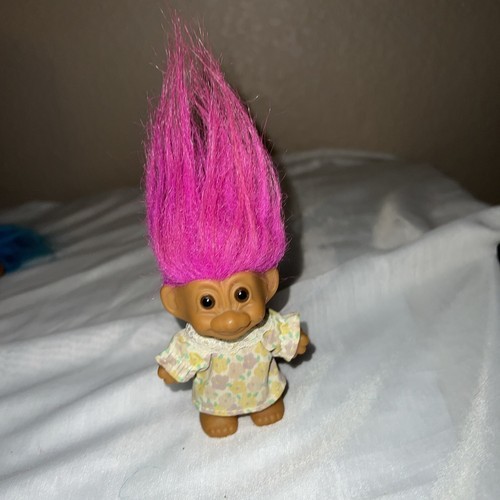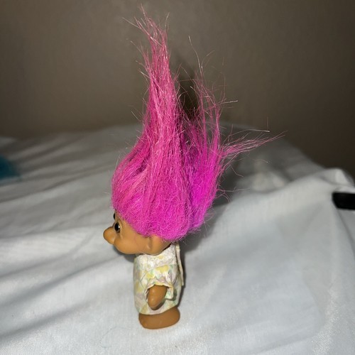 This adorable RUSS 3" Troll Doll is a must-have for collectors and fans of cute dolls. The doll features pink hair and is dressed in a charming flower print dress. Made in China, this vintage-inspired doll is perfect for display or play. The packaging is not included, but the doll is in excellent condition and ready to be loved by its new owner. Don't miss out on the chance to add this delightful Troll Doll to your collection.