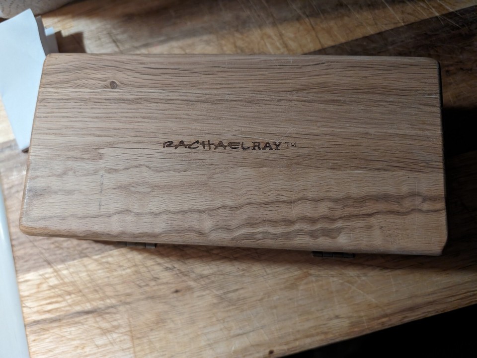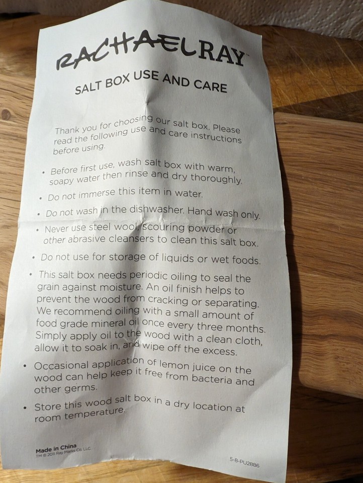 โThis is an unused Racheal Ray wooden salt box.โ |