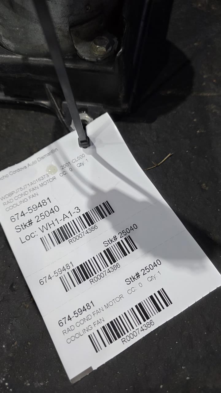Welcome to our Store! Radiator Fan Motor 215 Type Fan Assembly Fits 00-02 MERCEDES CL-CLASS 74386 Description Donor Vehicle VIN: WDBPJ75J71A016373 Model: CL500 Year: 2001 Mileage: 0 (0 = not available or unknown) Stock Number: 25040 Store Number: 1 Part Detail Part Grade: Part Category: U Part Placement: Notes: COOLING FAN This part will fit these makes and models with these options MERCEDES CL-CLASS 00 215 Type, Fan Assembly; (CL500) MERCEDES CL-CLASS 01 215 Type, Fan Assembly; CL55 MERCEDES CL-CLASS 01-02 215 Type, Fan Assembly; CL500 MERCEDES S-CLASS 00 220 Type, Fan Assembly; S430 MERCEDES S-CLASS 00 220 Type, Fan Assembly; S500 MERCEDES S-CLASS 01 220 Type, Fan Assembly; S430, thru VIN A229601 MERCEDES S-CLASS 01 220 Type, Fan Assembly; S500, thru VIN A229601 MERCEDES S-CLASS 01 220 Type, Fan Assembly; S55, thru VIN A229601 WARRANTY / GUARANTEE Return Policy All parts we sell come with a 30 Day Money Back Guarantee unless otherwise stated. The 30 day period starts when you take possession of the part. Please contact us through messaging for a Return Merchandise Authorization Number (RMA) before returning any part. We do not cover the cost of labor charges during the installation of your parts. All original shipping costs are non-refundable. Standard Warranty We offer a standard warranty on all mechanical parts. This covers the part only, no labor charges to install the part. We are not responsible for any improper installation or misdiagnosis. SHIPPING NOTES ABOUT US HELP Rancho Cordova Auto Dismantling ships to US addresses within the continental 48 states. Shipping to Alaska, Hawaii, Puerto Rico, APO, FPO or PO Box addresses is available for select parts only. Please contact us through messaging for details and shipping rates. Local Pick-up at our facilities is available. Please contact us prior to your purchase to arrange local pick-up. Buyer must select 'Buy It Now' prior to local pick-up. Please allow up to 10 days for delivery unless your part is included in's Guaranteed Delivery Program. Most areas in the US are within 5 days. If an item arrives damaged, please contact us via messaging within 24 hours for assistance. Please contact us prior to purchasing this part if you have any questions regarding our business policies, the warranties or guaranties we offer or the fitment of this part with your vehicle. We strive to make sure your vehicles repair needs are met the first time you order a part through our store . To do so, we are happy to verify your vehicles VIN number prior to your purchase, please use the Contact Seller feature within the listing. Parts Grading. A standard code system is used to communicate the condition and quality of a part between automotive recyclers, automotive repair shops, and insurers. Knowing how these codes are used will help you understand whether the part meets your expectations before you buy it and what you can expect from the part when you receive it. A Grade - The highest quality part. It is of low miles and/or exceptional condition for its age. B Grade - The second level quality part. It is of average miles and normal condition for its age. C Grade - The third level quality part. It has high miles and/or light damage. No Grade - A part that has not yet been graded.