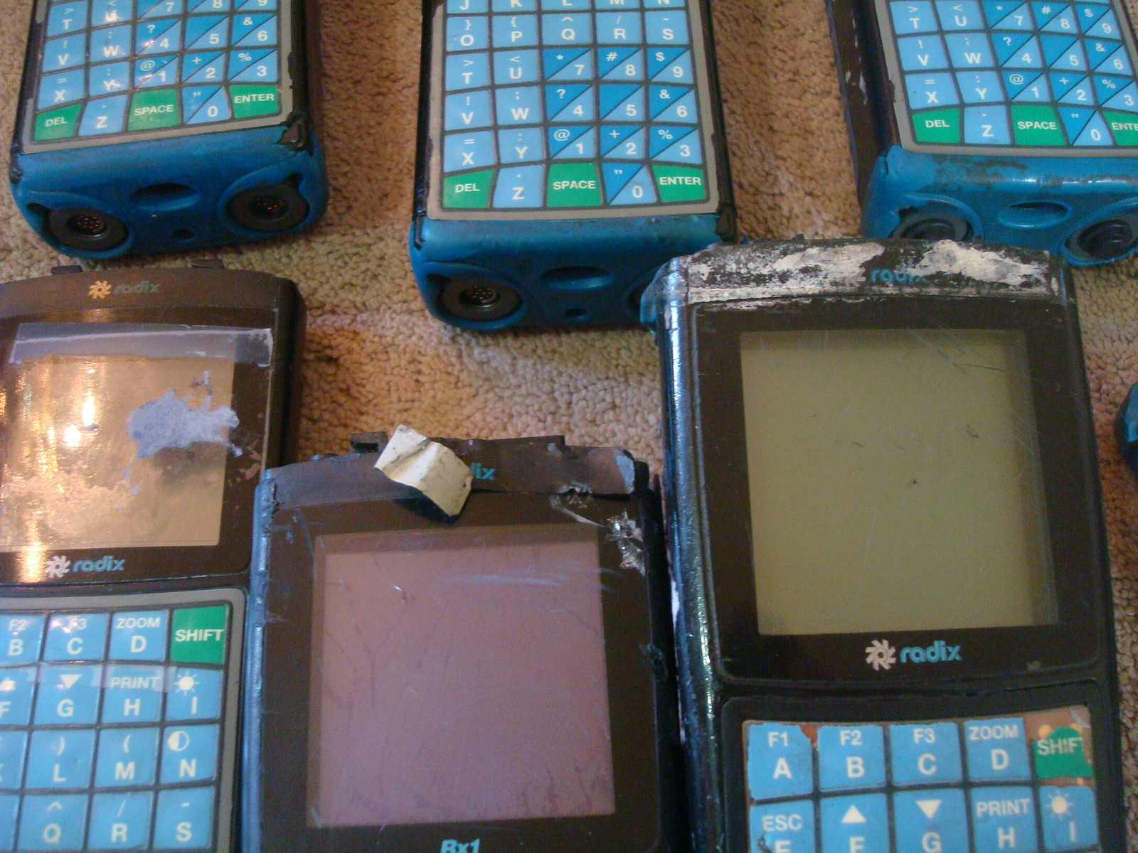 This is good Stuff here. I have a nice Radix Handheld Computer Scanners. If you dept. still uses these, you better ask your purchaser to get this. These make nice back-up's or additional unit. Only comes with the devices, no power-supply-charger, or printer. There are 16 units here. There is 1 FW300 and two Rx1's. The rest are not labeled with exact model numbers, but look to be the Rx1's. Condition- There are 16 and I would say that maybe half are for parts. the other half (8) will work with the correct battery charge. You can see condition from the pictures. But they are built rugged, so more may be working. Designed to encompass true durability in mobile/field applications. The Rx1 uses a couple technologies. Whether used alone, or with expansions, it provides complete relia