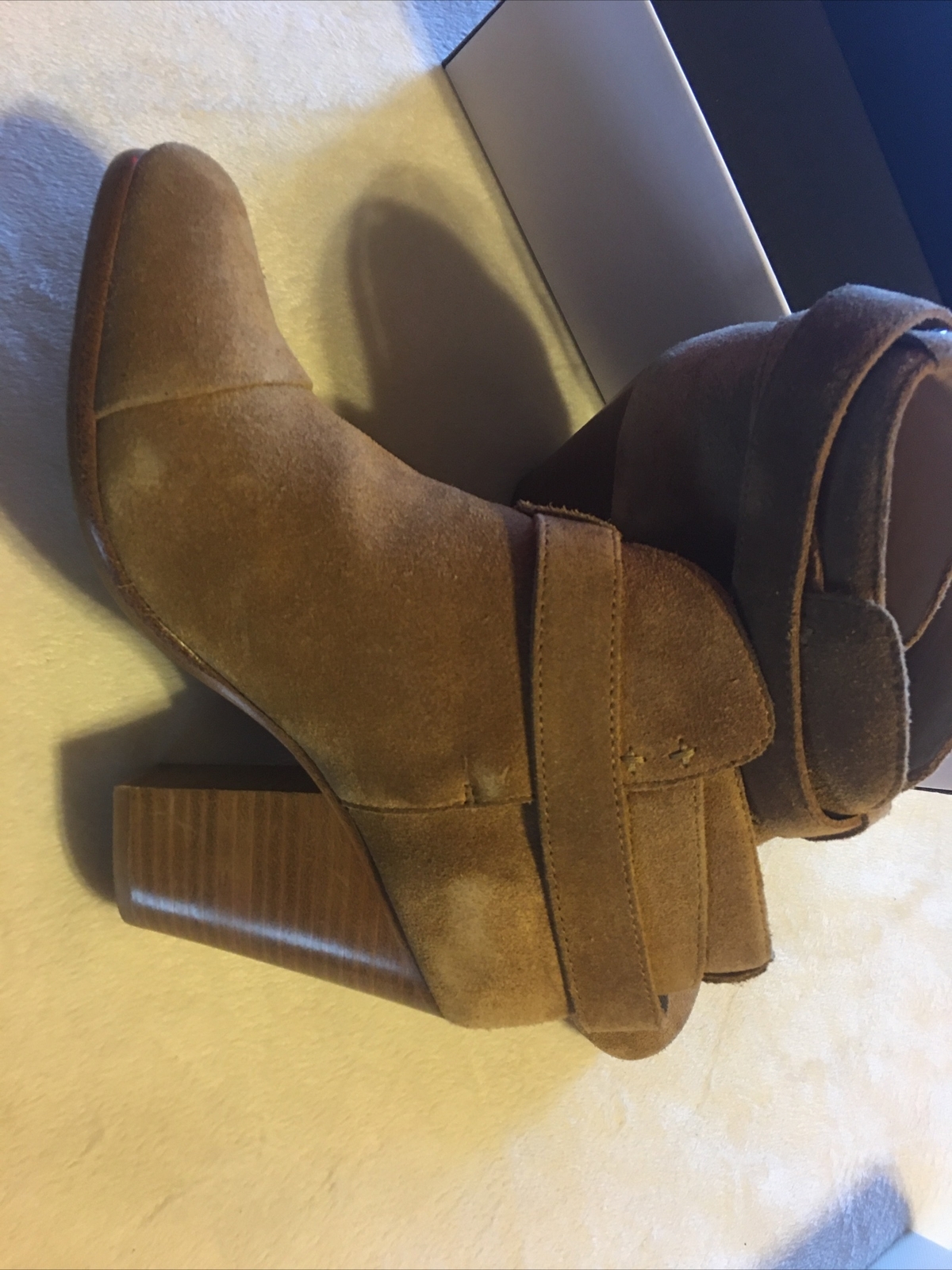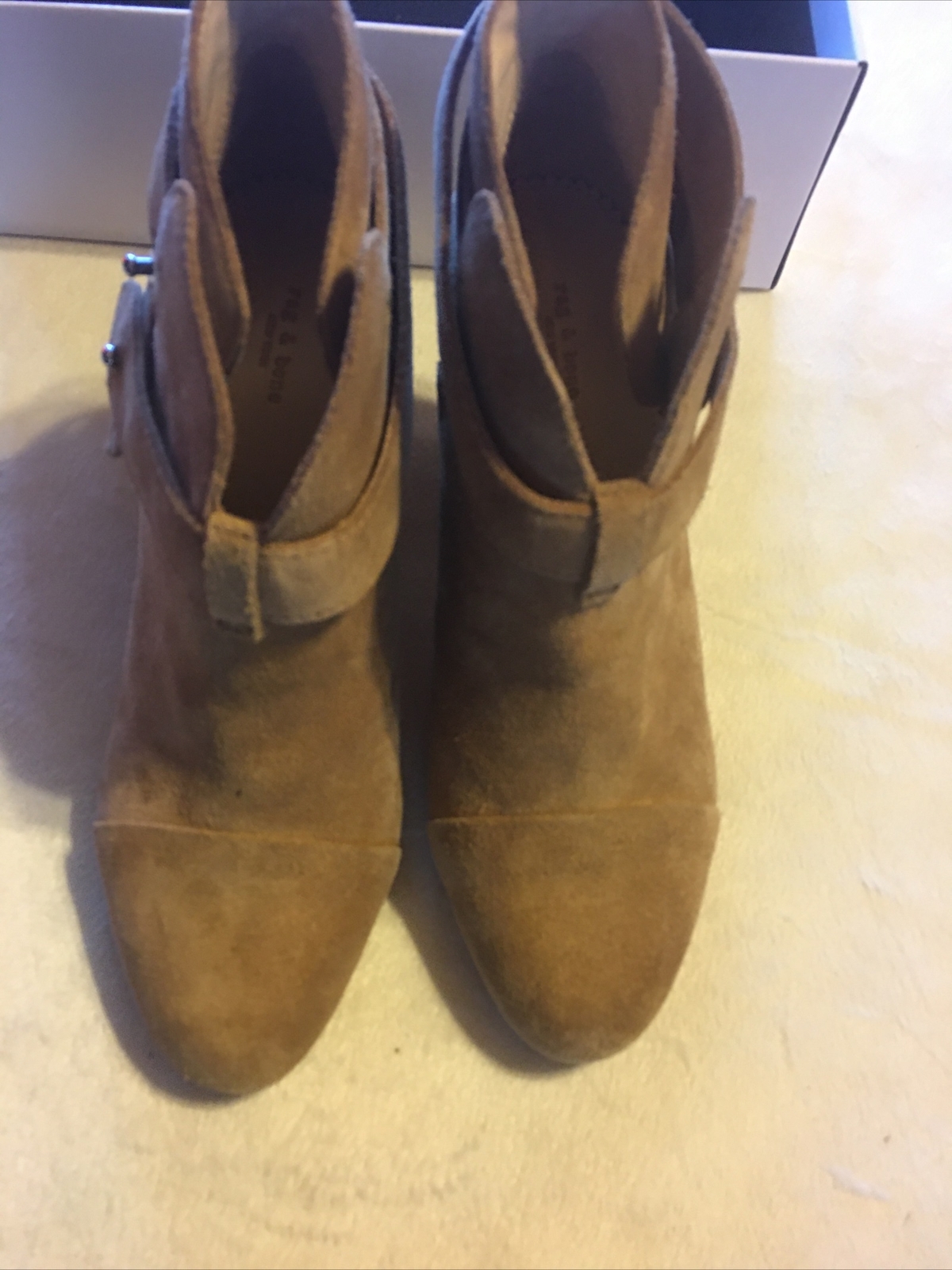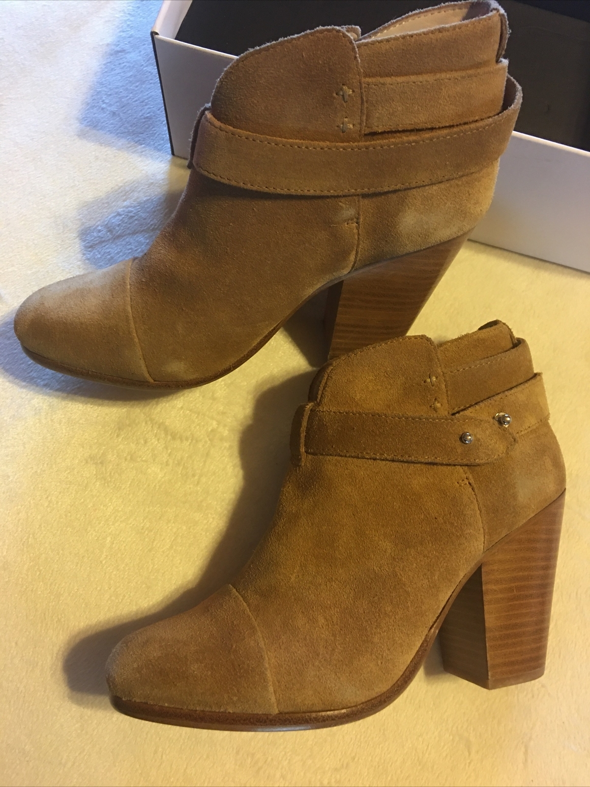 100% AUTHENTIC-Rag Bone Harrow Ankle Bootie BOOTS Suede sz 37 NEW Crafted with signature pushpin hardware and wraparound straps, this cult-favorite, stacked-heel boot is revered for its effortlessly cool, cap-toe silhouette and yearlong, casual versatility. Tan Nubuck color. soft tan suede. 3" heel 3 1/2" boot shaft Leather upper, lining and sole. made in Italy Retails for $425