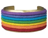 Bright, bold, and full of joy, this rainbow cord stripe cuff bracelet is a little wearable celebration. Stripes in vibrant, multicolor cords and framed with sleek gold edges, it?s the perfect mix of playful and chic. Wear the rainbow, spread the joy!