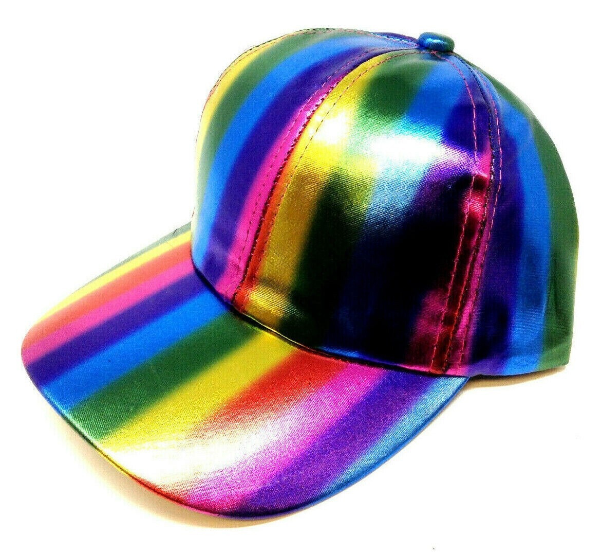 RAINBOW STRIPED LGBT PRIDE CURVED BILL ADJSUTABLE HAT CAP SHINY REFLECTIVE RETRO