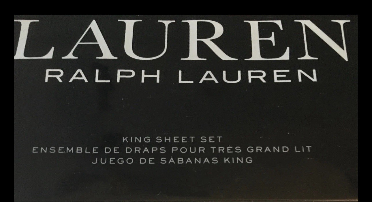 - RALPH LAUREN 4pc KING 100% COTTON SHEET SET PENCIL STRIPE GREY/WHITE Pre Owned