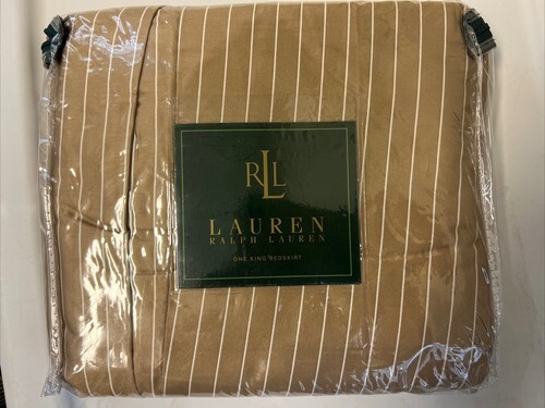 - RALPH LAUREN 52ND STREET CARAMEL CAMEL PINSTRIPE SATEEN KING BED SKIRT Vintage