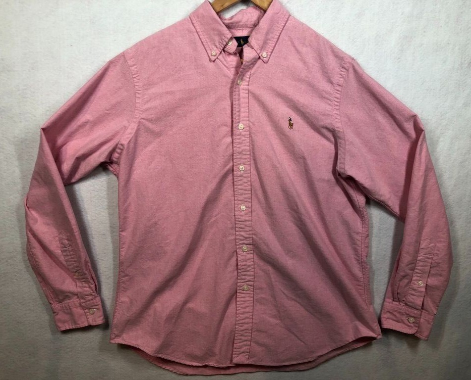 - Ralph Lauren Button Down Shirt Pink Preppy Long Sleeve Pony Logo Men's Large L