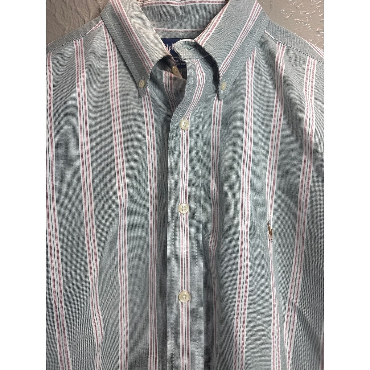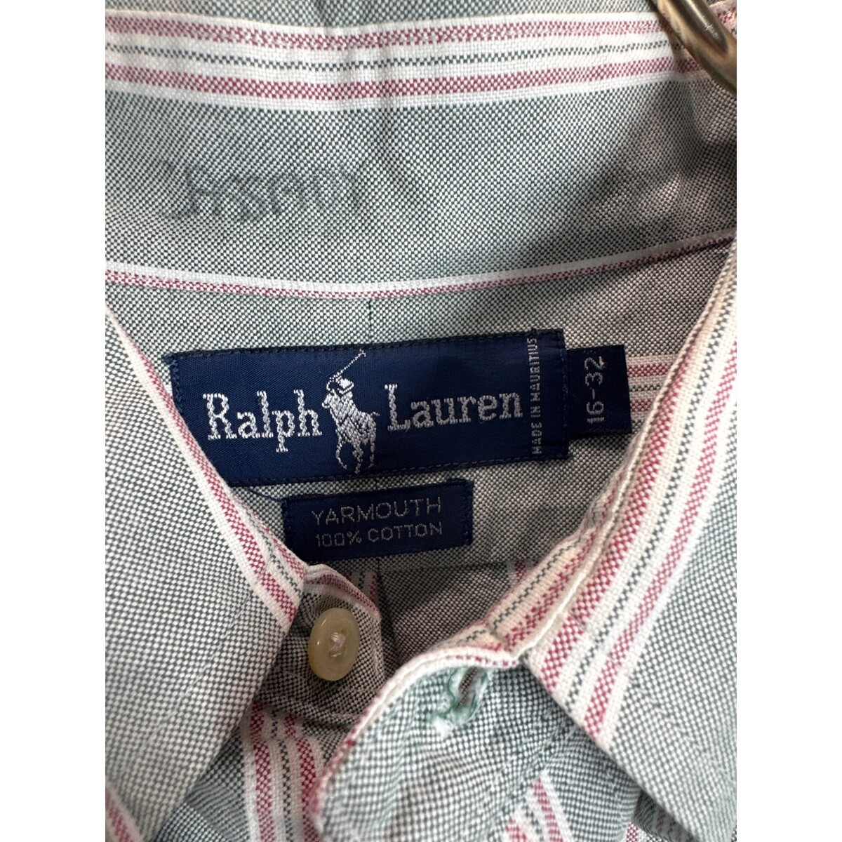 - Ralph Lauren Mens Green White Yarmouth Button Down Dress Shirt Preppy Size 16 32