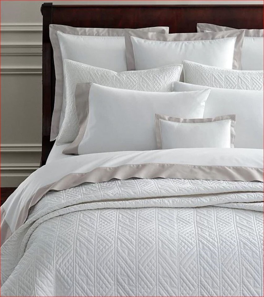 - crafted from silky cotton sateen with a thread count of 300. the Oakfield coverlet features geometric stitching inspired by the quilted construction of a vintage Ralph Lauren jacket