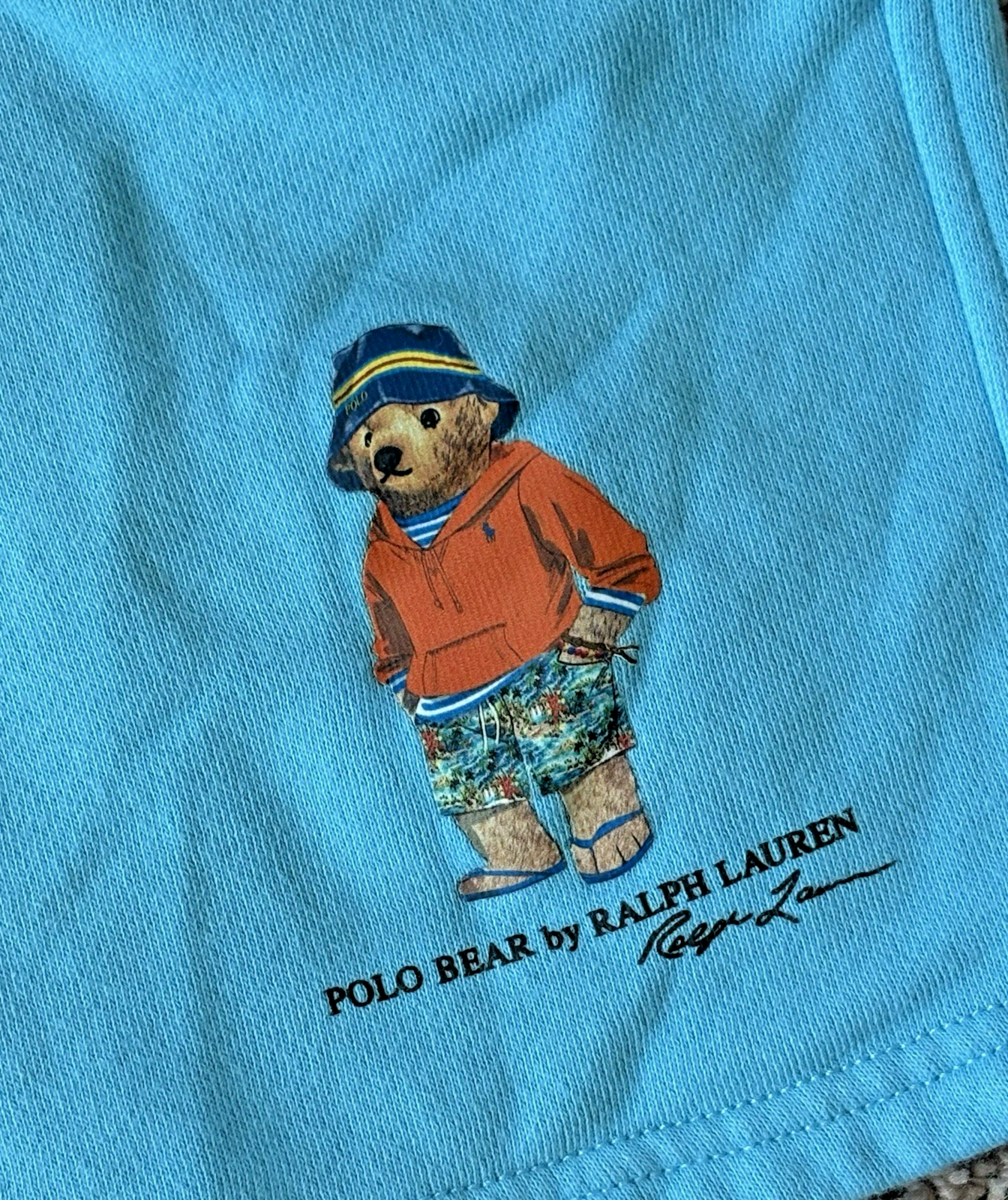 - Ralph Lauren Polo Bear Aqua Blue Boy's Drawstring Sweat Shorts - Size M (10 -12)