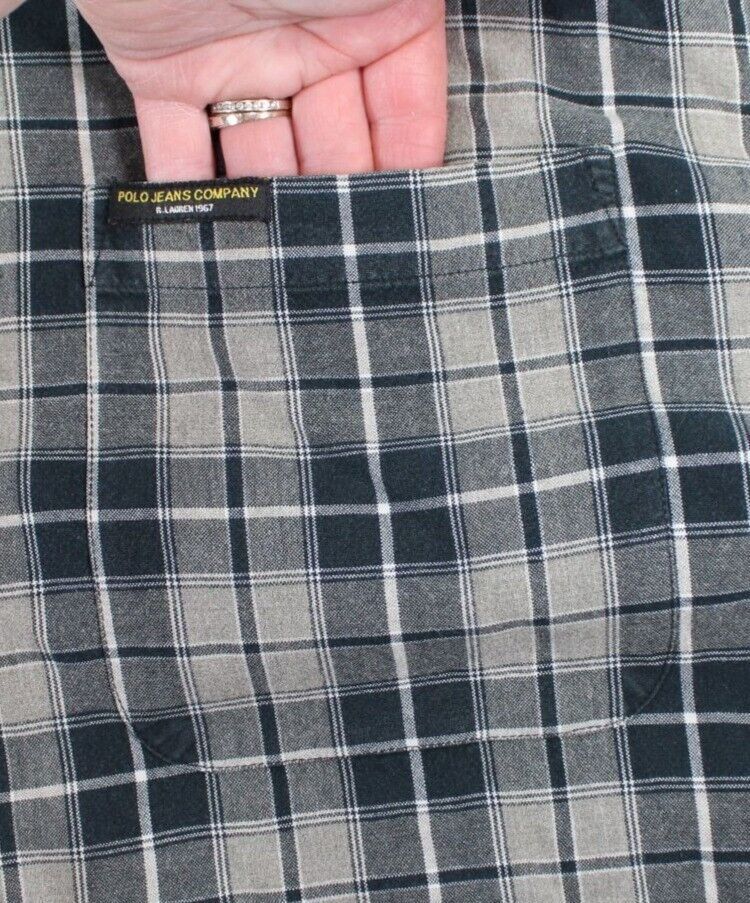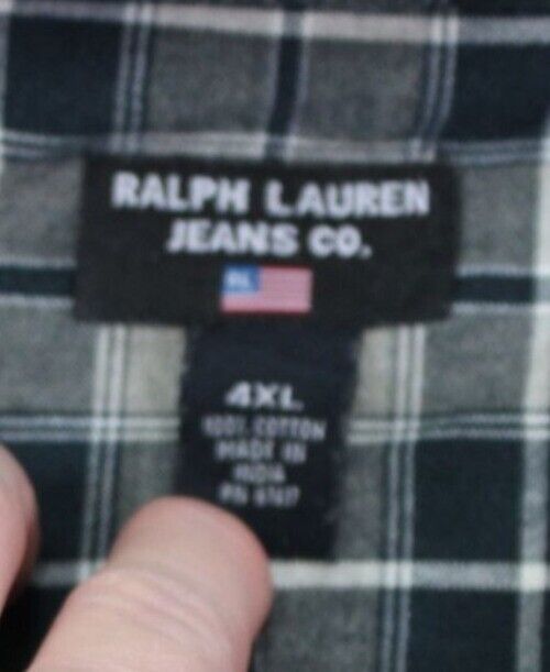 - Ralph Lauren Polo Jeans Co. Mens 4XL Plaid Button-Down Shirt Cotton Black/Beige